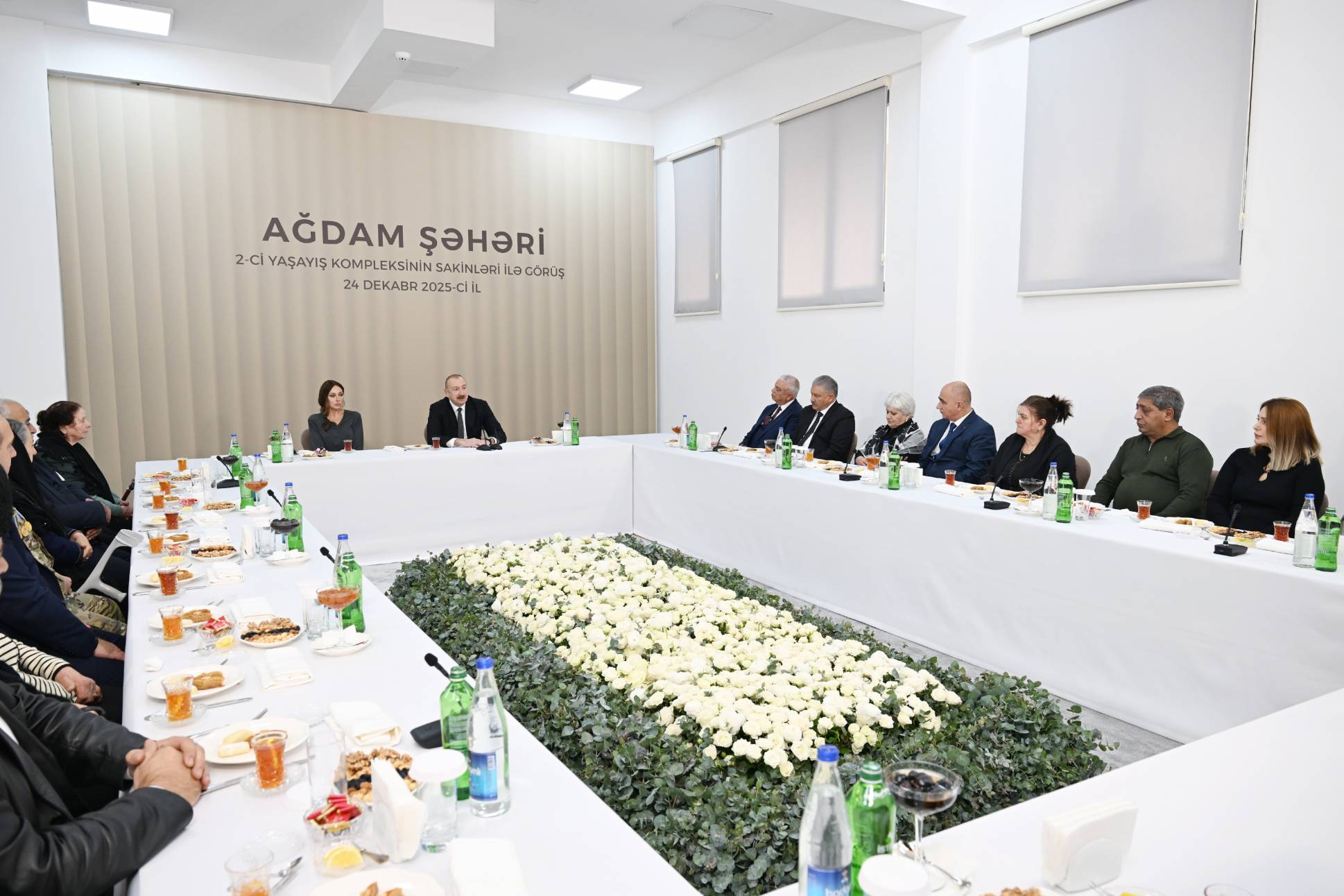 Orada indi bir neçə min insan yaşadığını və bu köç prosesinin davam etdiyini söyləyən dövlətimizin başçısı vurğulayıb: “Bu gün Ağdam şəhərində artıq insanlar yerləşir və bu yaşayış məhəlləsindəki 1268 mənzildə ağdamlılar yerləşəcək”.