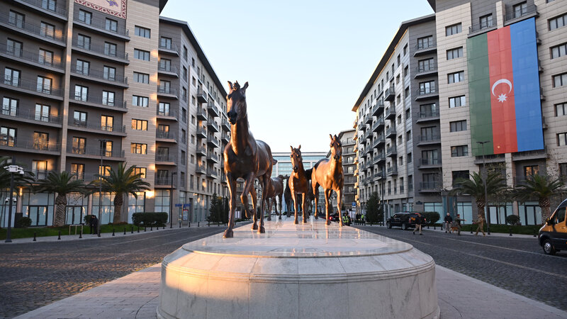 Dövlət başçısı, birinci xanım və qızları burada “Qarabağ atları” heykəltəraşlıq kompleksi, həmçinin Babək kvartalında həyata keçirilən işlər ilə tanış olub, Palıd meydanı parkında ilk palıd ağaclarını əkib, “Zaman” meydanının və buradakı piyada körpüsünün açılışında iştirak ediblər.