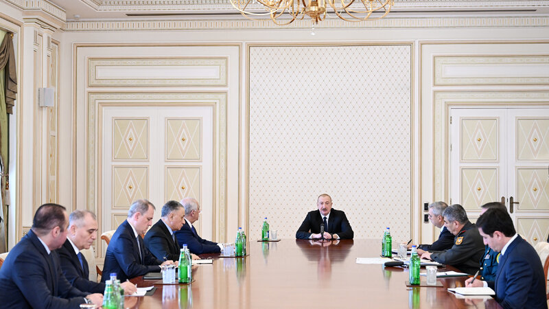 Dəfələrlə İran tərəfinə, xüsusilə keçən il baş vermiş toqquşmalardan sonra bildirilmişdir ki, Azərbaycan ərazisindən heç bir qonşu dövlətə qarşı istifadə olunmayacaq. Biz buna imkan verməyəcəyik, necə ki, heç vaxt bu günə qədər imkan verməmişik. Düzdür, keçən ilin yay aylarında və ondan sonrakı dövrdə İrandan bizə əsassız ittihamlar irəli sürülürdü. İranın dövlət qurumlarının nəzarətində olan media resursları Azərbaycanı ləkələmək, İranda yaşayan soydaşlarımızın fikrini dəyişdirmək üçün Azərbaycana qarşı çirkin, şər-böhtan kampaniyası aparırdı. Çünki yaxşı bilirlər ki, bu gün müstəqil Azərbaycan dövləti İranda yaşayan bir çox azərbaycanlılar üçün də ümid yeridir. Yəni bizi ləkələmək, bizi şərləmək, gözdən salmaq İran ictimaiyyəti qarşısında bu məqsədi güdürdü. Çünki bunun heç bir əsası yox idi. Azərbaycan nə o vaxt, nə də bu dəfə İrana qarşı olan əməliyyatlarda iştirak etmir və etməyəcək. Çünki bizim mövqeyimiz bundan ibarətdir. Bizim qonşu ölkələrə qarşı hər hansı bir əməliyyat keçirməyə nə marağımız var, nə də siyasətimiz buna imkan verir. Biz öz ərazi bütövlüyümüzü qoruyuruq və qorumuşuq. Necə ki, Ermənistan işğalına son qoymuşuq, istənilən şər qüvvəyə qarşı öz gücümüzü göstərməyə hazırıq və İranda bunu unutmasınlar. Onların törətdiyi bu terror aktı bütün başqa çirkin amillərlə yanaşı, böyük nankorluq nümunəsidir. Son hadisələr baş verən kimi biz onlara xəbər göndərdik, başsağlığı verdik. Xarici işlər naziri mənim göstərişimlə həmkarı ilə danışdı. Mən onların səfirliyinə gedib başsağlığı vermək üçün öz mövqeyimi bildirdim. Halbuki məndən başqa heç bir dövlət başçısı İranın heç bir səfirliyinə getməyib. Yəni bunu qiymətləndirməmək, bunu yerə vurmaq, özlərini alçaq, nankorlar kimi aparmaq heç kimə şərəf gətirmir. Bu şərəfsizlər, bizə qarşı bu terror aktını törədənlər peşman olacaqlar. Bizim gücümüzü sınamasınlar. Bizim gücümüzü sınamaq istəyənlərin başı “Dəmir yumruq” vasitəsilə yarıldı. Bugünkü hadisə də eyni nəticəni hasil edəcək. Ona görə bu məsələ ilə bağlı tədbirlər planı hazırlanmalıdır. Bütün göstərişlər verilmişdir. İranın Azərbaycandakı səfiri Xarici İşlər Nazirliyinə çağırıldı, etiraz notası veriləcək, digər diplomatik addımlar atılacaq. Sərhədlə bağlı müvafiq göstərişlər verildi.