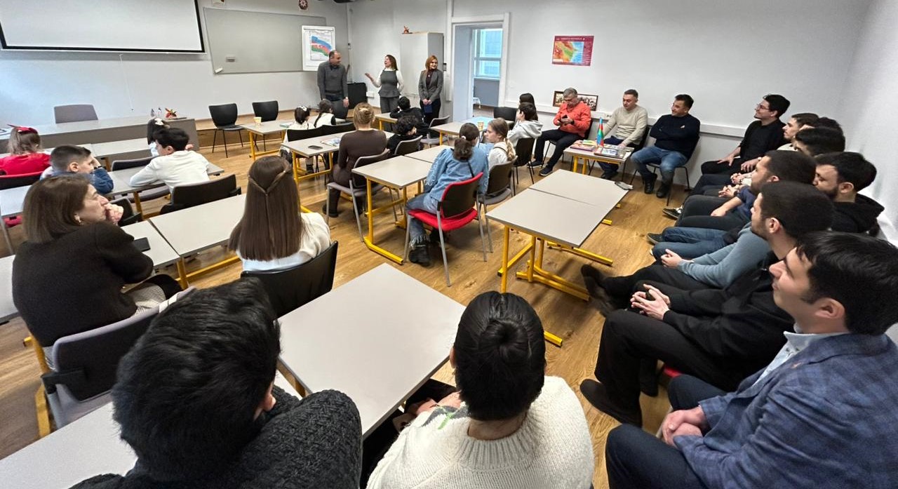 Komitə əməkdaşları daha sonra Tallin Universitetinin nəzdində fəaliyyət göstərən həftəsonu Azərbaycan məktəbini ziyarət ediblər. Prezident İlham Əliyevin Azərbaycan dilinin qorunması və beynəlxalq müstəvidə təbliğinin gücləndirilməsinə xüsusi önəm verdiyini vurğulayan sədr müavini Vaqif Seyidbəyov xarici ölkələrdə Azərbaycan dilinin tədrisinin əhəmiyyətinə diqqət çəkib. Estoniya Karyera Təhsil Akademiyasının həmsədri, həftəsonu məktəbinin müəllimi Sənəm Əliyeva tədris müəssisəsi haqqında geniş məlumat verib. Məktəbin fəaliyyətinin Prezident İlham Əliyevin Azərbaycan dili ilə bağlı tapşırıq və tövsiyələrinə uyğun qurulduğunu və komitə tərəfindən dəstəkləndiyini qeyd edib. Komitə əməkdaşları dərs prosesini izləyib, şagirdlərin çıxışlarını dinləyiblər.