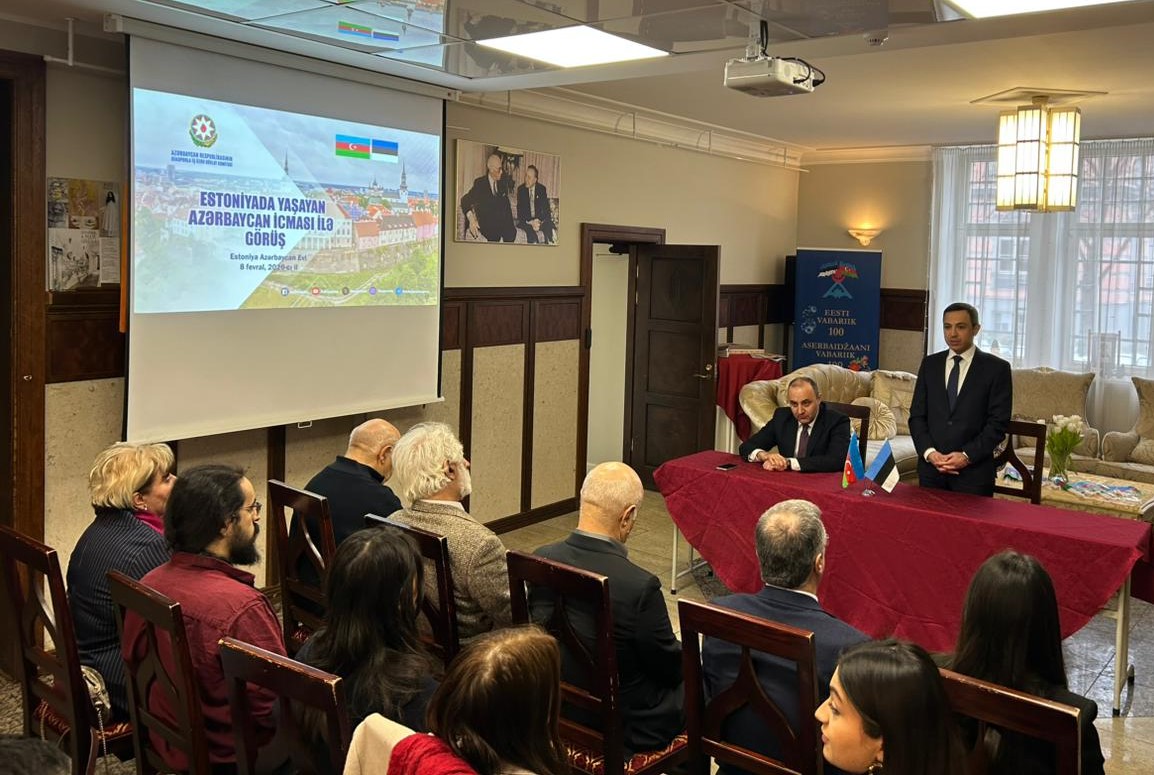 Estoniyadakı Azərbaycan icması ilə görüş Tallin şəhərində fəaliyyət göstərən Azərbaycan Evində baş tutub. Görüşdə Estoniyadakı soydaşlarımızın diaspor fəaliyyəti və onun gücləndirilməsi, qarşıda duran vəzifələr, eləcə də Baltikyanı ölkələrdə yaşayan azərbaycanlılar arasında əlaqələrin inkişafı məsələləri geniş müzakirə olunub. İcma birliyinin möhkəmləndirilməsi, gənclərin diaspor fəaliyyətinə cəlbi, həmçinin mədəniyyət və təhsil istiqamətində təşəbbüslərin genişləndirilməsi xüsusi vurğulanıb.