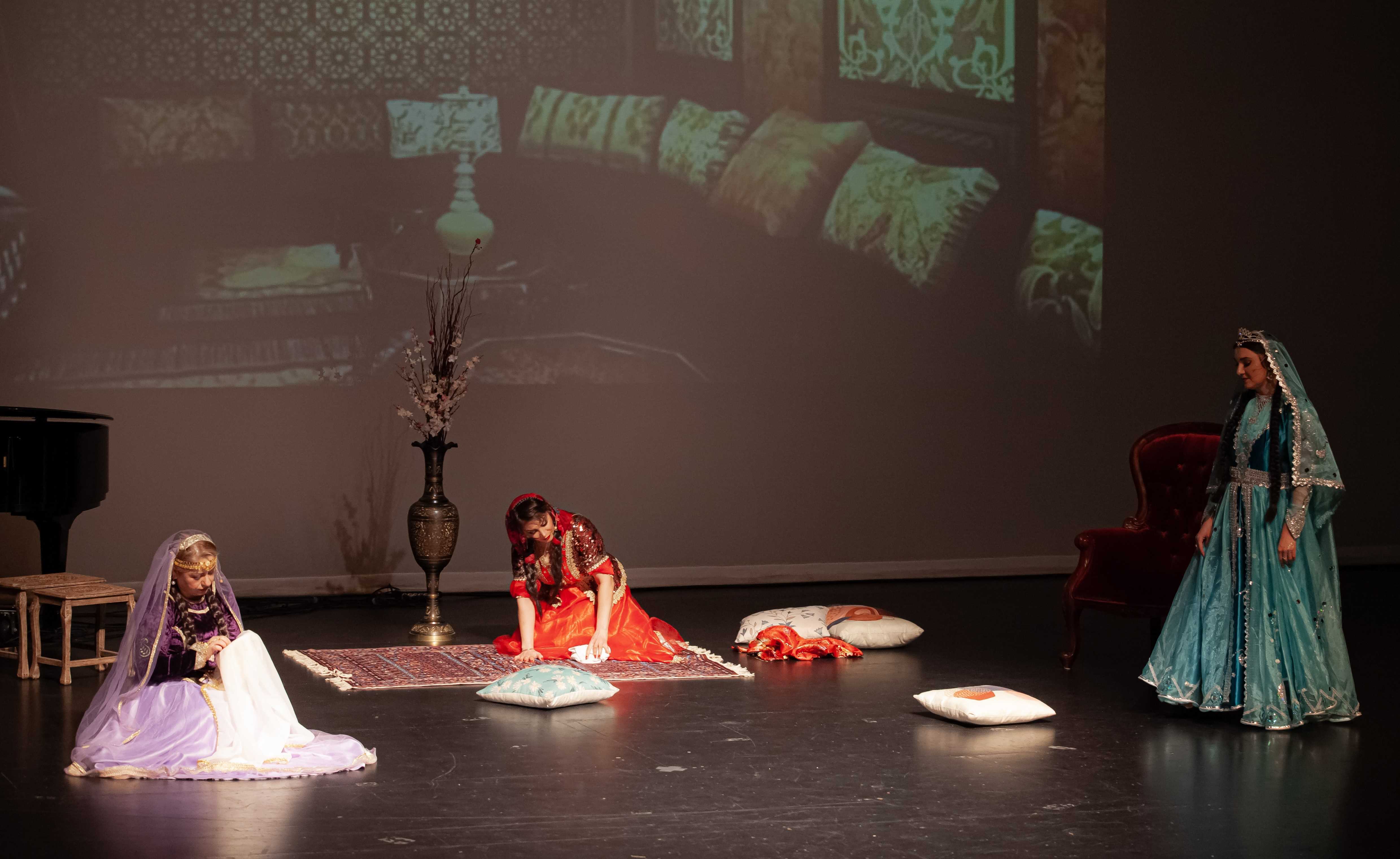 Tamaşada rolları İlyas Gəncəviniya (Əsgər), Kristina Rəhimova (Gülçöhrə), Rövşən Tağıyev (Süleyman), Nəsrin Əttari (Asya), Məmməd Peyğəmbəri (Soltan bəy), Nurqəmər Peyğəmbəri (Cahan xala), Leyla Kərəmzadə (Telli), Səid Şirazi (Vəli) və ansamblın digər üzvləri ifa ediblər. Rəngarəng milli geyimlərdə çıxış edən aktyorlar, rəqqaslar və musiqiçilər peşəkar ifaları ilə tamaşaçılara unudulmaz anlar yaşadıblar. Səhnə əsərini yüksək qiymətləndirən izləyicilər incəsənət ustalarının çıxışlarını gur alqışlarla qarşılayıblar.