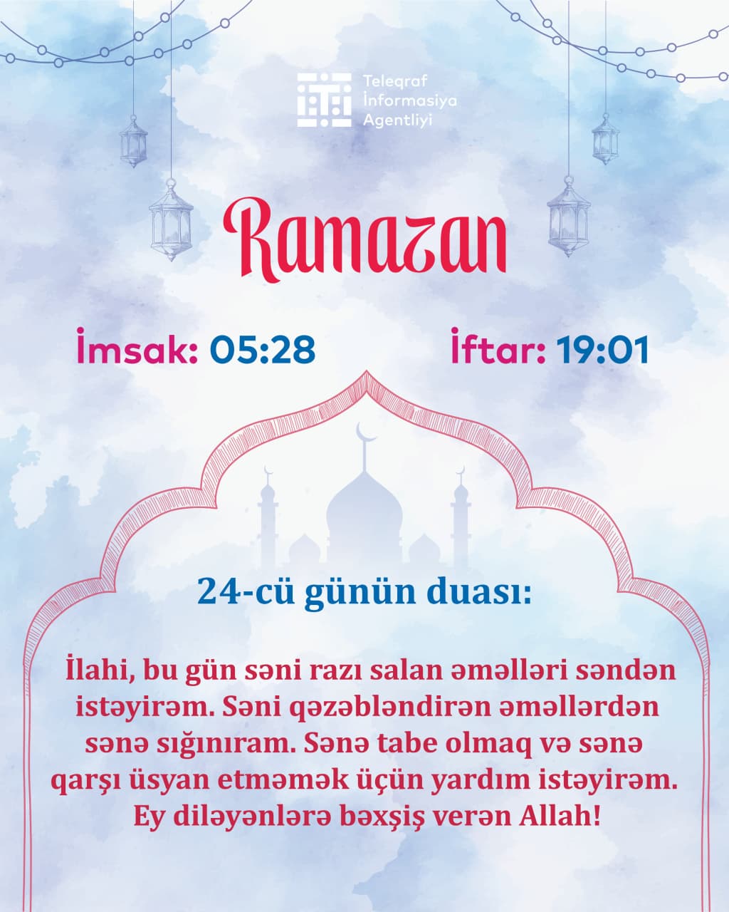 Teleqraf xəbər verir ki, Qafqaz Müsəlmanları İdarəsinin (QMİ) açıqladığı Ramazan ayının təqviminə əsasən, martın 14-ü Bakıda imsak vaxtı saat 05:28, iftar isə 19:01-a təyin olunub.
