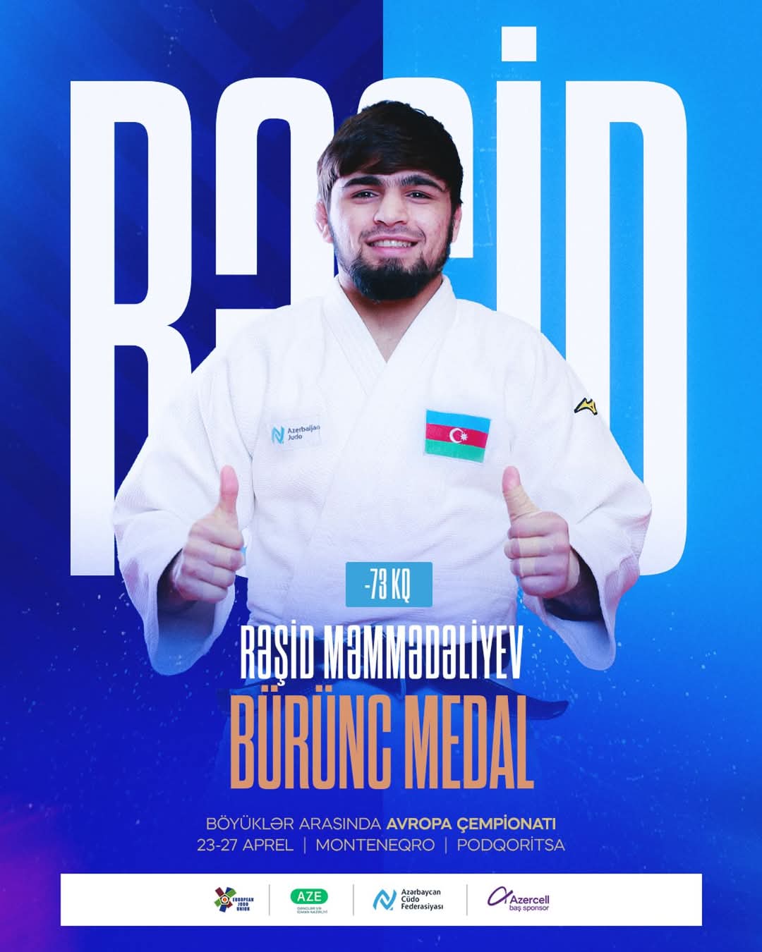 Azərbaycan cüdoçusu Rəşid Məmmədəliyev Monteneqronun paytaxtı Podqoritsada keçirilən Avropa çempionatında 3-cü yer uğrunda görüşə çıxıb.