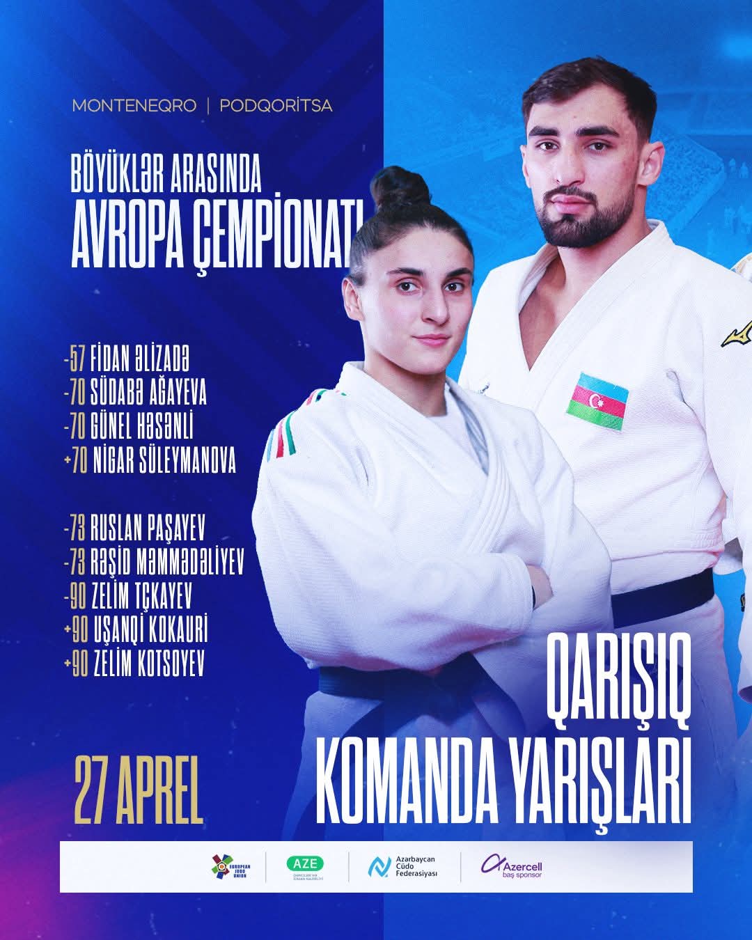 Monteneqronun paytaxtı Podqoritsada keçirilən cüdo üzrə Avropa çempionatında bu gün qarışıq komandalar mübarizə aparacaqlar.