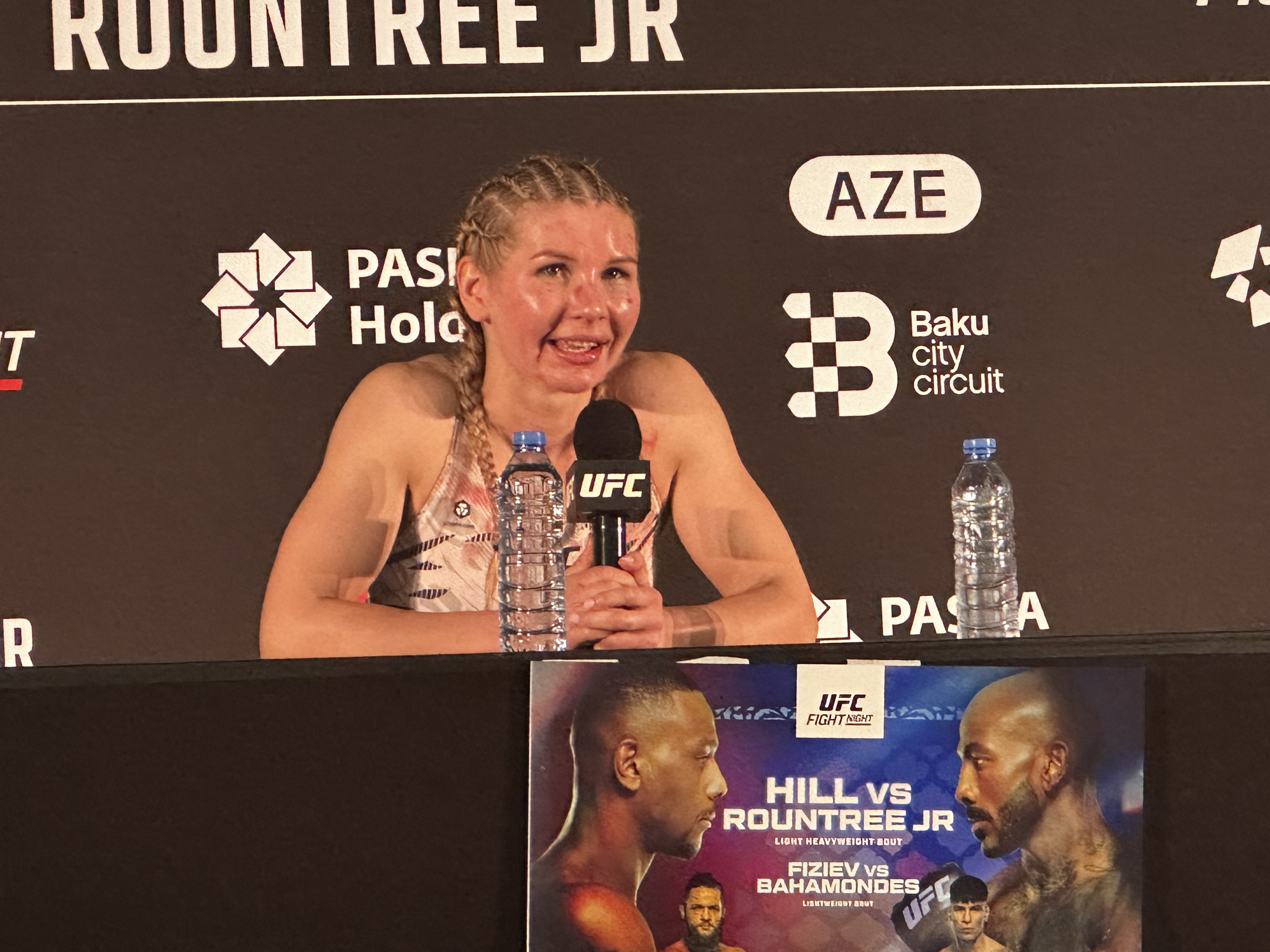 Teleqraf xəbər verir ki, bunu MMA döyüşçüsü Darya Jeleznyakova Bakıda təşkil olunan “UFC Döyüş Gecəsi”ndə Melissa Mallinsi məğlub etdikdən sonra mətbuat konfransında deyib.