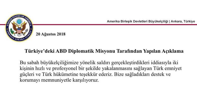 Teleqraf.com xəbər verir ki, buna səbəb kimi Türkiyə polisinin ABŞ səfirliyinə silahlı hücum etmiş iki şəxsi dərhal yaxalaması göstərilir.