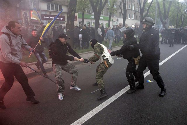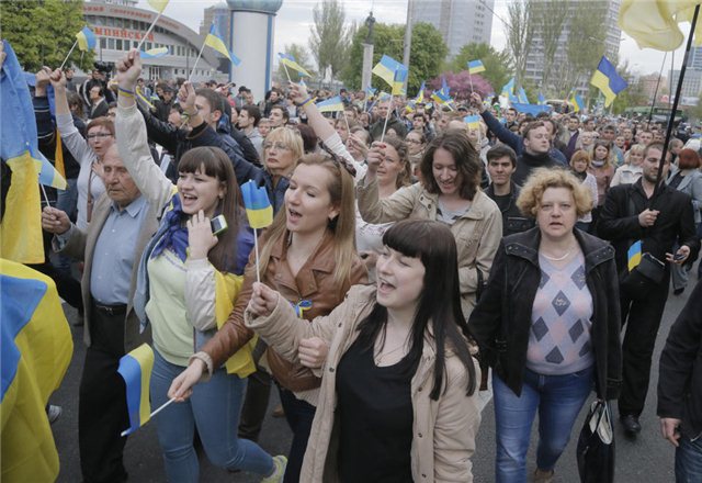 Ukrayna mtbuatının yaydığı məlumata görə, Donetsk şəhərində vahid Ukraynaya dəstək marşının iqtirakçılarına kamuflyajlı və dəyənəkli adamlar hücum ediblər. Üzərində tanınma nişanı olmayan hərbi kamuflyaj geyinmiş şəxslər əvvəl yürüşün yolunu kəsib, sonra isə nümayişçilərə basqın ediblər. Xəsarət alanların əksəriyyətinin başı yarılıb.