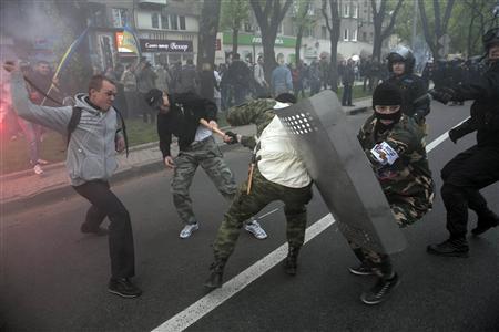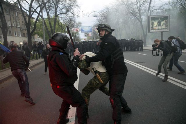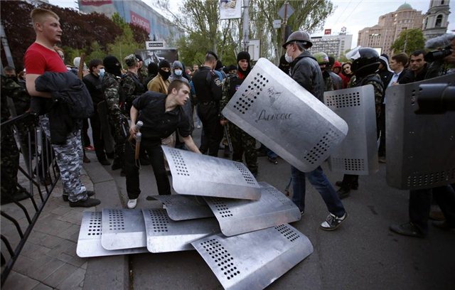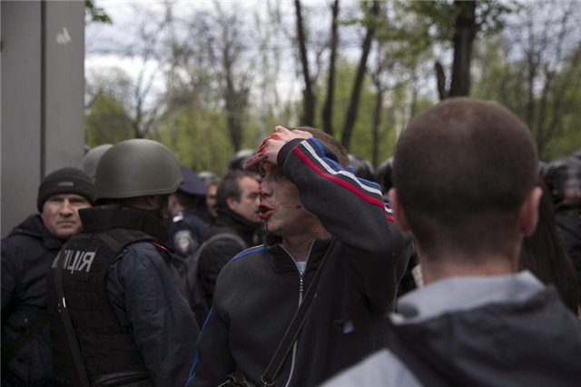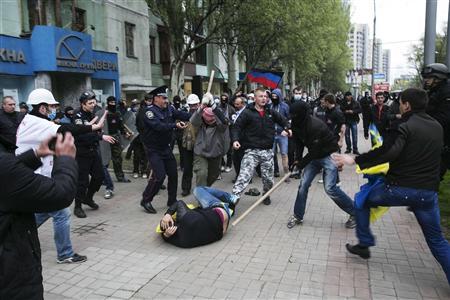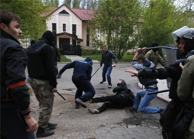Bu gün Donetskdə Ukraynanın federallaşmasına qarşı çıxan nümayişçilərə hücum olub.