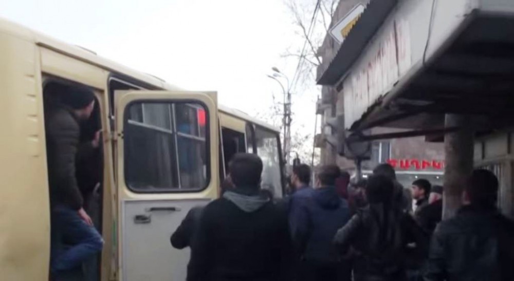 Ermənistanda çağırışçıları hərbi komissarlığa aparan avtobusa hücum edilib. Avtomobildə olan bir qrup gənc nəqliyyat vasitəsini əhatəyə alıb. Yol kəsişmələrindən birində onun dayanmasından istifadə edərək qapıların açılması tələbi ilə avtobusu yumruqlamağa başlayıblar.