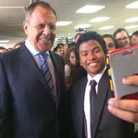 Rusiyanın xarici işlər naziri Sergey Lavrov Moskva Dövlət Beynəlxalq Əlaqələr İnstitutunun malayziyalı tələbəsi ilə selfi çəkdirib.