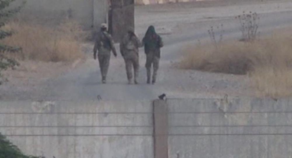 YPG-çilər Suriyanın Tel-Abyad şəhərində keçmiş gömrük ərazisində gəzərkən görünüb.
