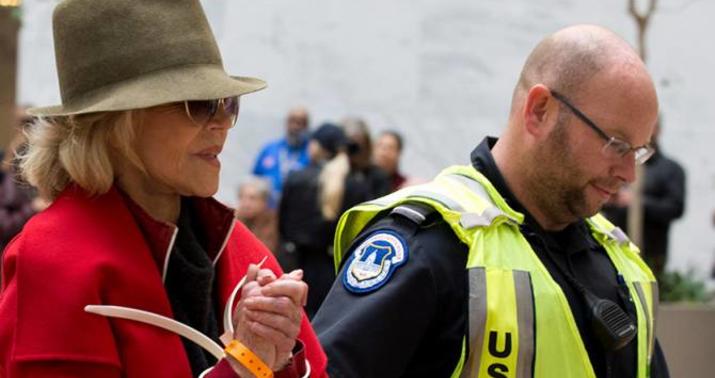 Amerikalı aktrisa Ceyn Fonda hər cümə günü ABŞ Konqresinin binası qarşısında keçirilən ekoloji aksiyalarda iştirak edir. Hər dəfə hüquq-mühafizə orqanları tərəfindən buna görə tutulsa da, aktrisa kampaniyanı davam etdirmək niyyətindədir və o, dekabrın 21-də 82 yaşını dəmir barmaqlıqlar arxasında qarşılayacağını istisna etmir.