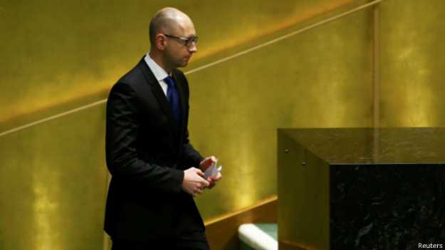 Ukraynanın baş naziri Arseniy Yatsenyuk Qərb dövlətlərini Rusiyaya qarşı sanksiyaları Kiyevin Ukraynanın bütün əraziləri üzərində nəzarəti bərpa edənə qədər ləğv etməməyə çağırıb.