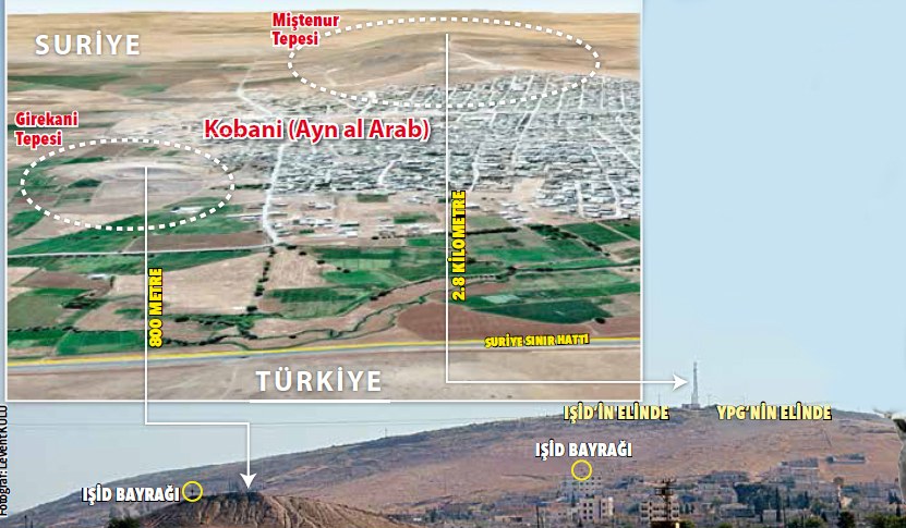 Teleqraf.com-un Türkiyə KİV-ə istinadən xəbərinə görə, hazırda İŞİd şəhərin mərkəzinə doğru irəliləyir. PKK-ya bağlı YPG üzvləri İŞİD-in irəliləyişini dayandırmağa çalışarkən, küçə döyüşlərinə səhnə olan şəhərdə qırğın yaşanir.
