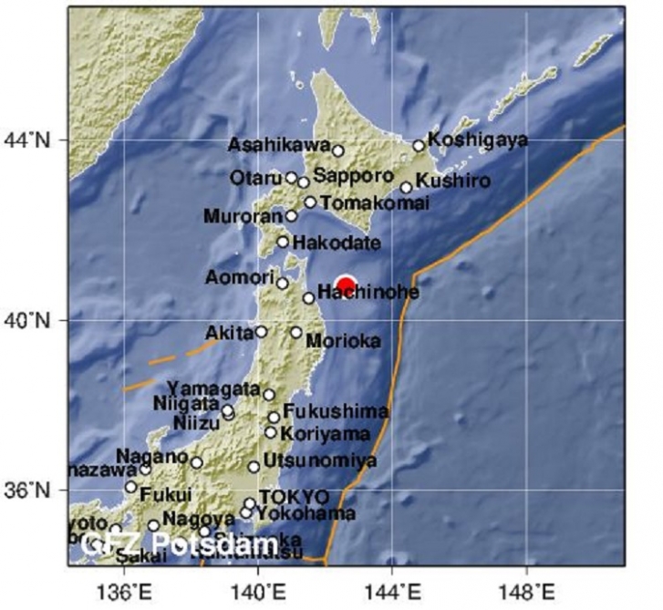 Teleqraf.com xəbər verir ki, yerli vaxtla saat 02:23-də qeydə alınan yeraltı təkanların episentri Aomori prefekturasının sahillərində, ocağı 10 kilometr dərinlikdə yerləşib.