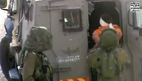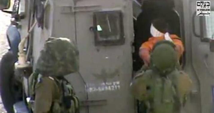 Teleqraf.com xəbər verir ki, fələstinli uşaq 2 israilli əsgər tərəfindən əlləri qandallanıb və gözləri bağlanaraq patrul maşınının arxasına mindirilib.