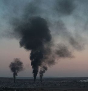 “Al Jazeera”nın xəbərinə görə, İŞİD koalisiya təyyarələrinin Kobaniyə hava hücumunu əngəlləmək üçün ərazidə yanğınlar törədir.