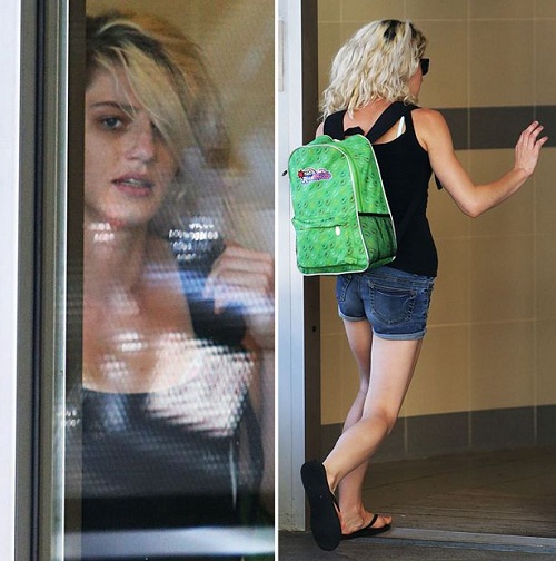 Məhkəmədən çıxdıqdan sonra evə qayıdan qadın pitbull cinsindən olan itlə görüntülənib.