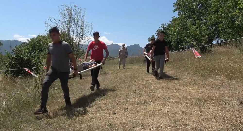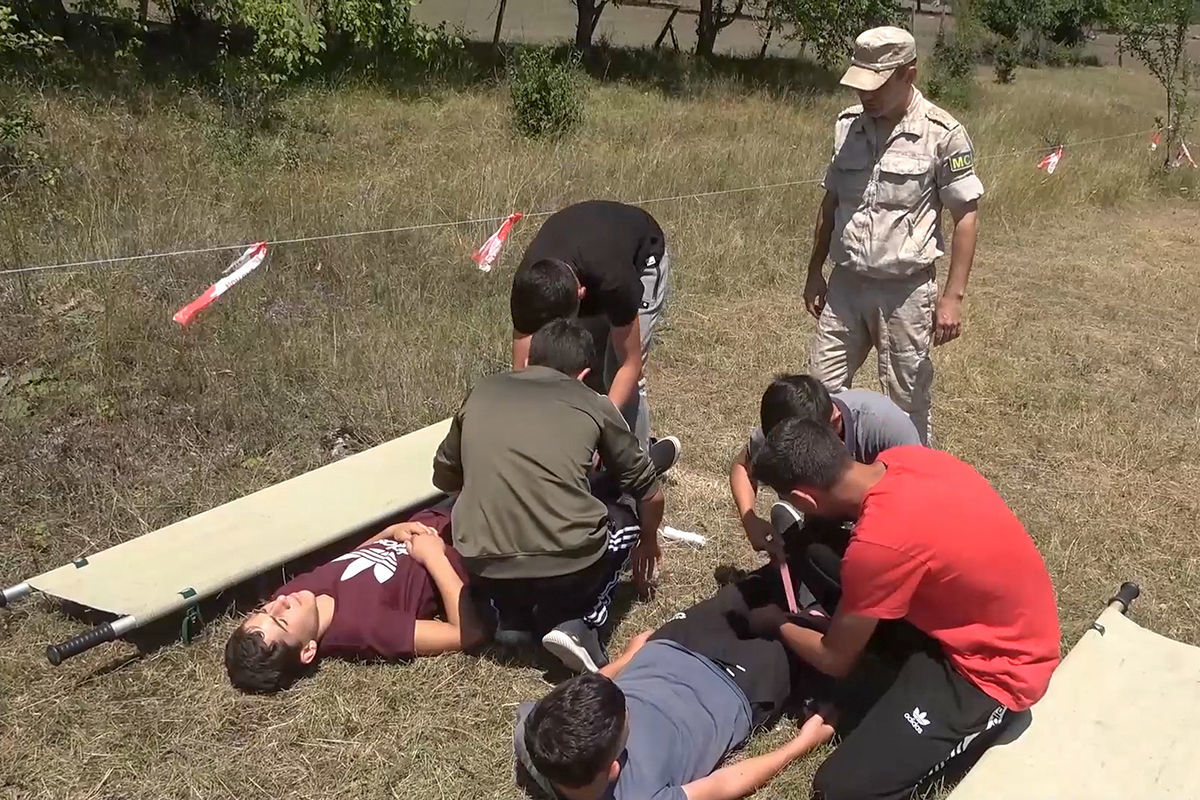 Rusiyalı hərbçilər məktəblilərə minaaxtaranlar tərəfindən yoxlanılmamış ərazidə oyun oynamaqdan yarana biləcək təhlükələri, habelə ilkin tibbi yardımın göstərilməsi üsullarını izah ediblər.