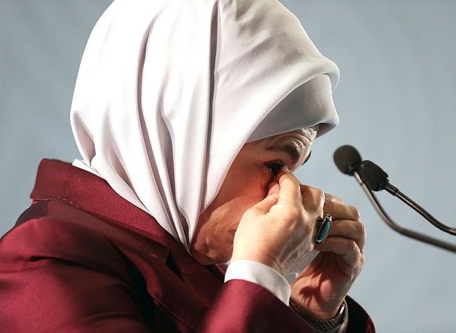 Teleqraf.com xəbər verir ki, mübarizənin əhəmiyyətinə diqqət çəkən Prezident Rəcəb Tayyib Ərdoğanın həyat yoldaşı Əminə Ərdoğan çıxışı zamanı kövrəlib.
