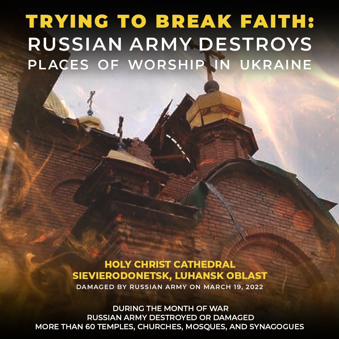 Qeyd edilir ki, kilsə, məscid, sinaqoqlar, dini qurumların əsas inzibati binaları əsasən Kiyev, Donetsk, Jitomir, Zaporojya, Luqansk, Sumı, Xarkov və Çerniqov kimi vilayətlərdə dağıdılıb: