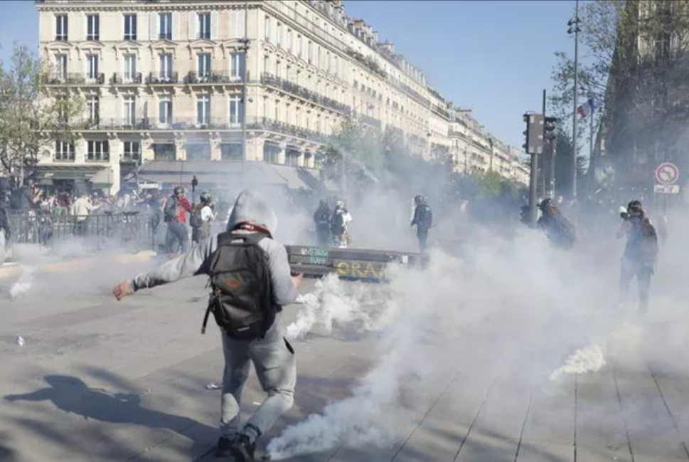 Parisin “Respublika” meydanında müxtəlif maddələr atan nümayişçilərə polis gözyaşardıcı qazla cavab verib. Fəallar zibil qutularını isə yandırıblar.