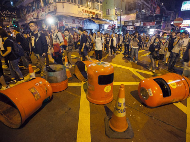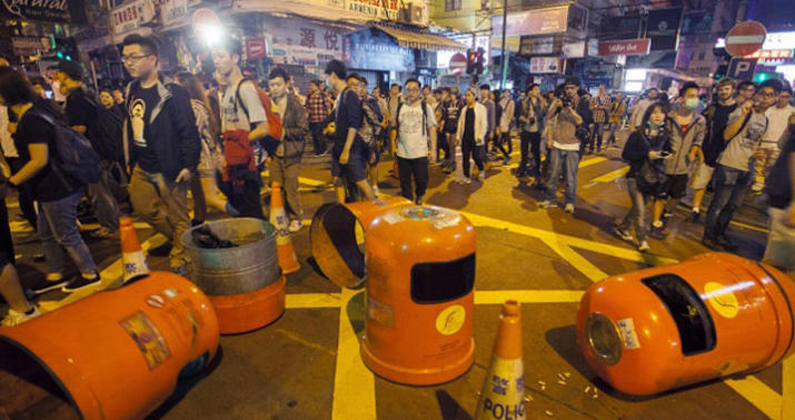 Etiraz aksiyasının iştirakçıları yenidən Koulun yarımadasındakı Monqkok adlı əraziyə keçməyə cəhd ediblər. Üç gün öncə asayiş keşikçiləri adıçəkilən ərazini barrikada və çadır düşərgələrindən təmizləmişdilər. Bu dəfə polis nümayişçiləri dağıtmaq üçün rezin dəyənəklər və gözyaşardıcı qazdan istifadə edib.
