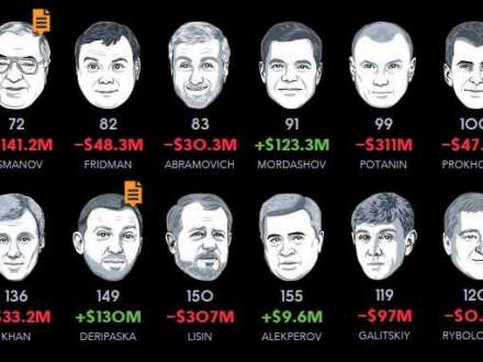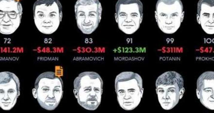 Növbəti yerləri isə Sergey Qalitski 97 milyon, Viktor Vekselberq 48,8 milyon, Mixail Fridman 48,3 milyon, Mixail Prokorov 47,4 milyon, German Xan 33,2 milyon, Roman Abramoviç 30,3 milyon və Dmitri Ribolovlev 0,6 milyon dollarlıq itki ilə bölüşdürürlər.