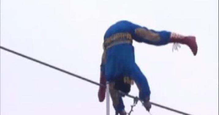 Kəndirbaz heç bir təhlükəsizlik tədbiri görmədən 72 saat ərzində göydə qalıb.