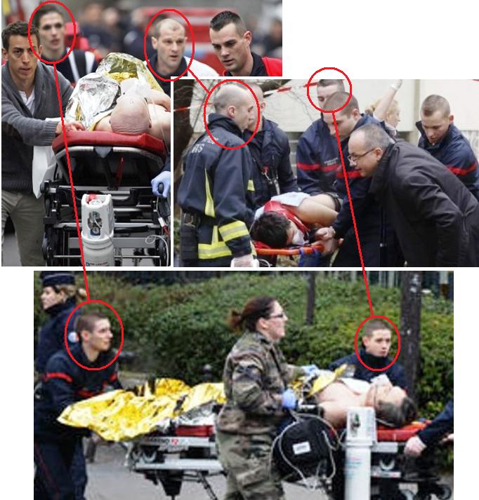 Fotolardan göründüyü kimi, yaralıları eyni adamlar daşıyır. Hadisənin ağırlığına uyğun sayda tibb personalı gözə dəymir. Görünən odur ki, tibb işçiləri yaralıları növbəli qaydada daşıyıblar... Küçədə sakinlərin gözə dəyməməsi də diqqətçəkəndir. Bundan başqa, hücumdan sonra jurnalın redaksiyasındakı vəziyyəti göstərən fotolar da ortada yoxdur. Əvəzində naşı rejissorlar reksiyanın bayırdan atılan atəş nəticəsində deşilmiş pəncərəsinin fotosunu yayblar. Sual olunur, jurnalistləri öldürməyə gələnlər niyə avvəlcədən onları xəbərdar etməliydilər? Harada görsənib ki, terrorçular hadisənin şahidlərinə(!) hansı qurumu təmsil etdiklərini deyib getsinlər?.Terrorçunun özünü polisə təhvil verməsi barədə məlumat yayan Fransanın hüququ mühafizə orqanları görünür doğrudan da terrorun və terrorçunun mahiyyətindən xəbərsizdirlər. Ya da bunların bəxdinə “Vicdanı sızıldayan” terrorçu düşüb.
