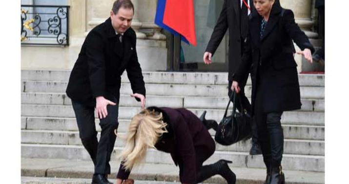 Musavat.com-un məlumatına görə, saraydan çıxarkən Danimarkanın baş naziri bədbəxt bir qəza keçirib. Xanım baş nazir Helle Şmidtin pilləkanlarda ayağı ilişib və yıxılıb.