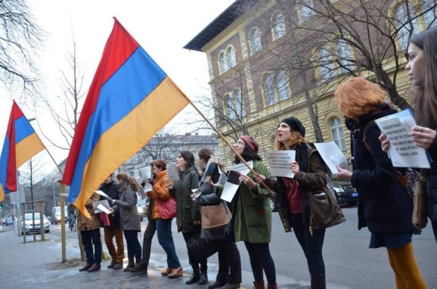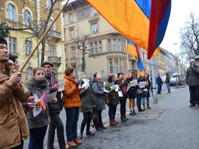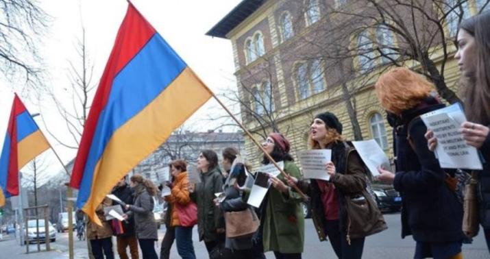 Macarıstanda Mərkəzi Avropa Universitetində təhsil alan erməni tələbələr Rusiyanın Budapeştdəki səfirliyi qarşısında aksiya keçirib.