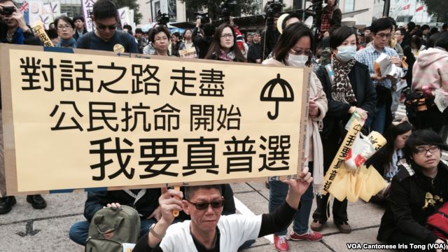 Aksiya iştirakçıları Honq Konqun icra hakimiyyətinin başçısı Leunq Çan Yingin istefasını və Pekinin 2017-ci il seçkilərinə namizədlərin yoxlanılması qərarının ləğvini tələb edib. Aksiya minlərlər polis işçisinin müşahidəsi altında təşkil edilib.