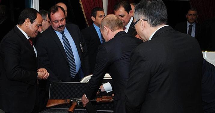 Teleqraf.com Rusiya mediasına istinadən xəbər verir ki, bununla bağlı Sisinin sözçüsü Ala Yusif açıqlama verib. Onun sözlərinə görə, Putin Qahirədə verilən şam yeməyindən sonra Sisiyə “AK-47” markalı avtomat verib.