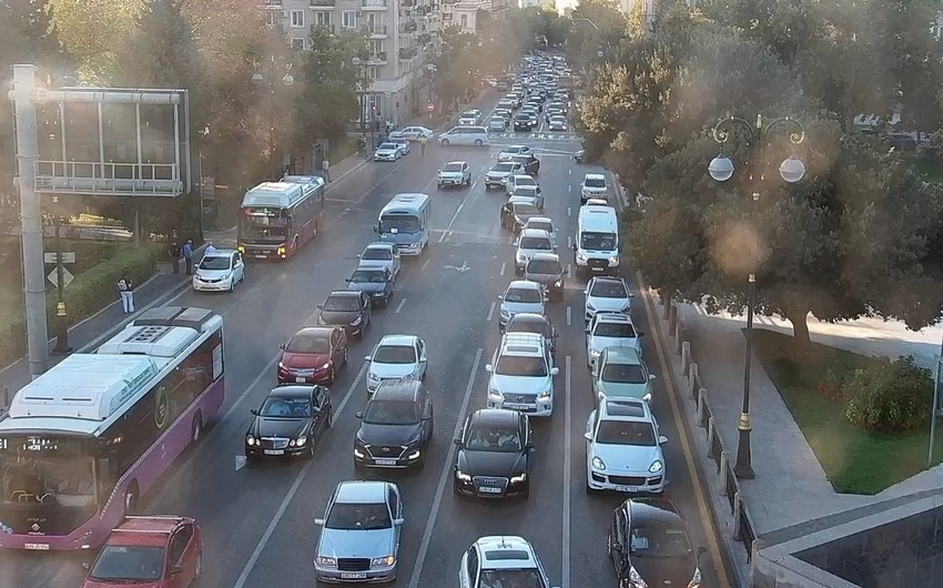 Bakının bir sıra yollarında nəqliyyatın sıxlığı müşahidə edilir.