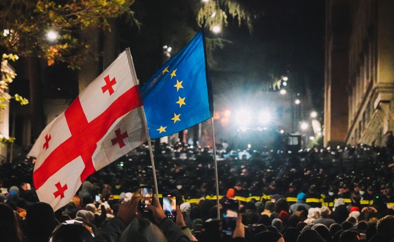 Tbilisidə Gürcüstan parlamentinin binası önündə keçirilən növbəti mitinqdə gərginlik yaşanır.