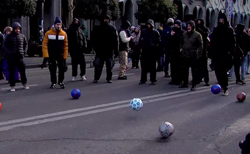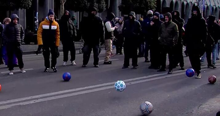 Teleqraf.com xəbər verir ki, bir qrup etirazçı aksiyaya top gətirib və onlar parlament binasının önündə futbol oynayırlar.