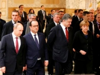 Teleqraf.com Rusiyanın NTV telekanalına istinadla xəbər verir ki, Dimitri Peskov telefon danışıqlarında, həmçinin Debaltseva şəhərindəki vəziyyətin də müzakirə ediləcəyini deyib. Fransua Olland, Pyotr Poroşenko, Angela Merkel və Vladimir Putin fevralın 11-12-də Minskdə görüşmüşdülər.