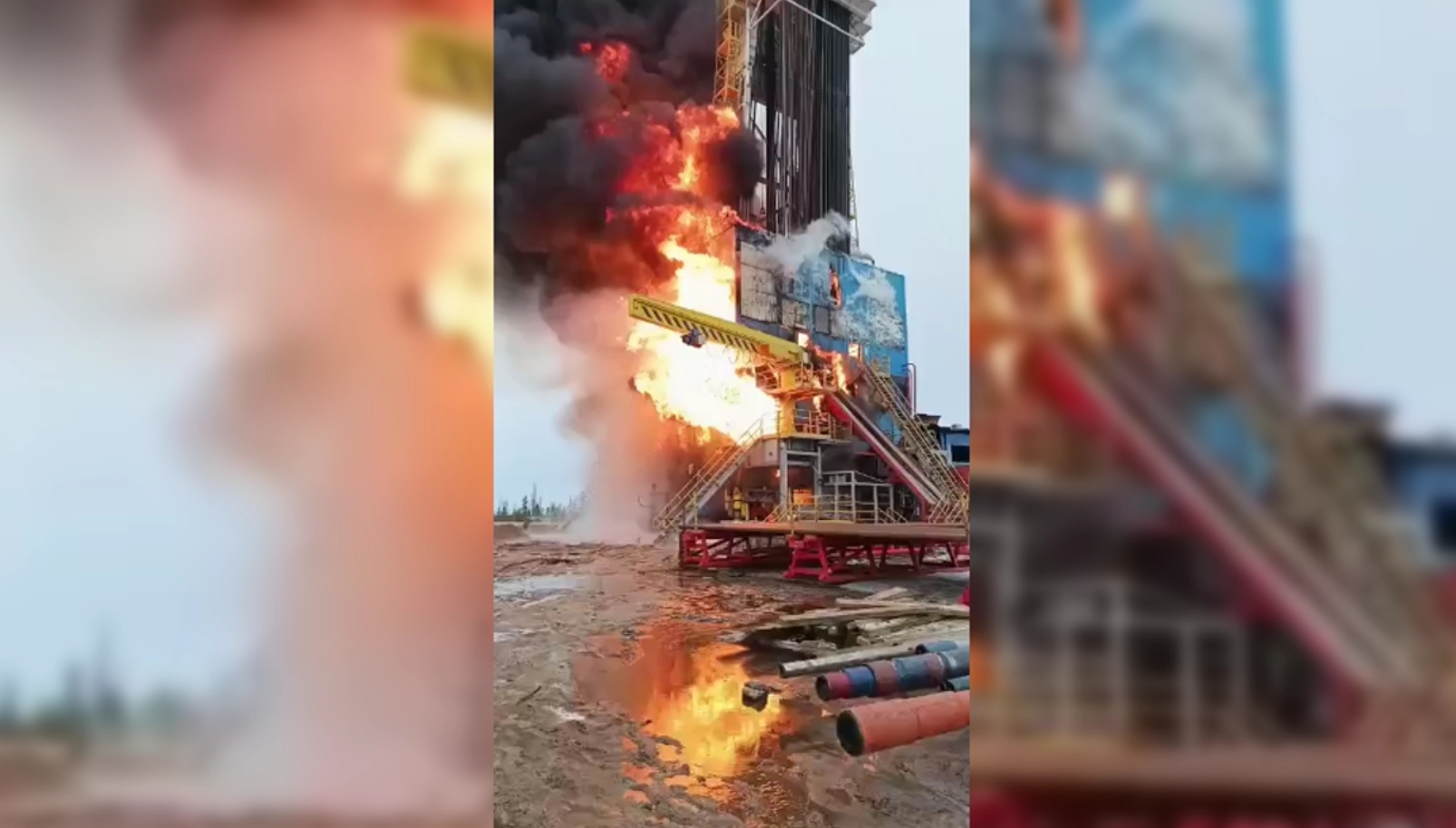 Rusiyanın Yamalo-Nenets Muxtar Dairəsində “Xarampurnefteqaz” yatağında baş verən yanğın zamanı neft platforması dağılıb.