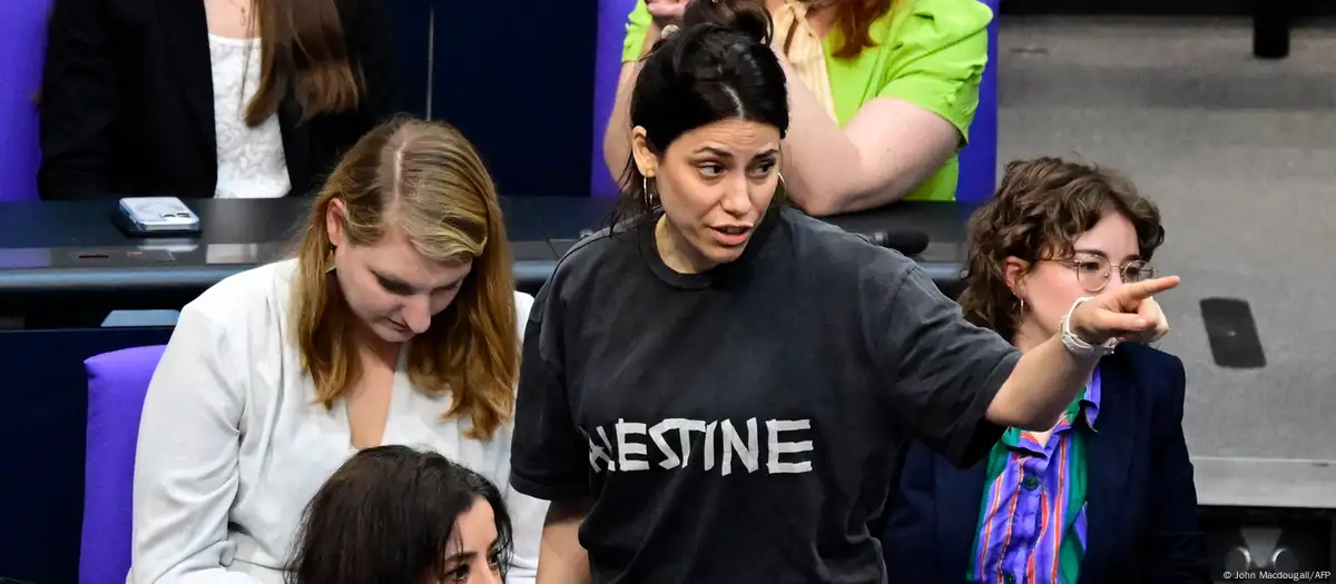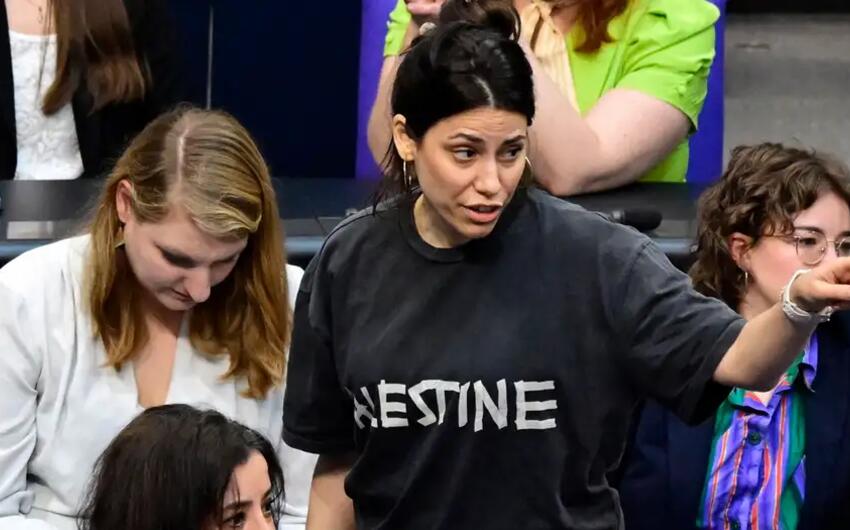 Teleqraf “Haber7”yə istinadən xəbər verir ki, Bundestaqın türk əsilli deputatı Cansın Köktürk iclasa Fələstini dəstəkləyən köynək geyib.