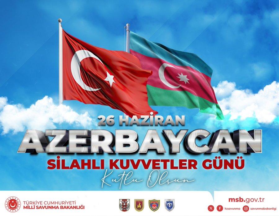 Türkiyənin Milli Müdafiə Nazirliyi Azərbaycan Ordusunu Silahlı Qüvvələr Günü münasibətilə təbrik edib.