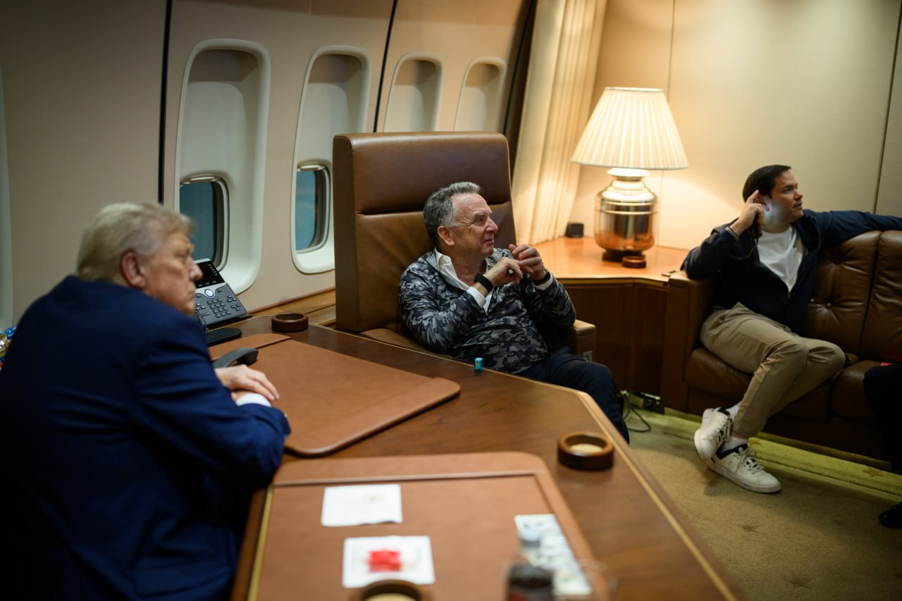 Fotoda Amerika lideri rəsmi kostyumdadır, lakin onun xüsusi nümayəndəsi Stiv Uitkoff və dövlət katibi Marko Rubio daha rahat geyimə üstünlük veriblər.