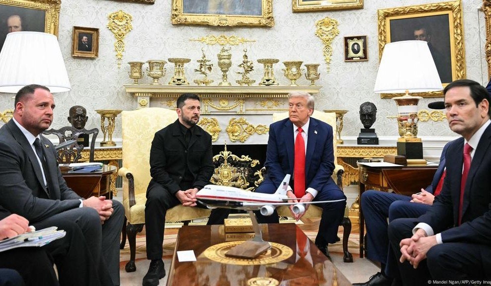 ABŞ və Ukrayna prezidentləri Donald Tramp və Volodimir Zelenski arasında qapalı görüşdən öncə Oval kabinetdə Ukraynanın 1992-2013-cü illəri əhatə edən xəritəsi qoyulub.