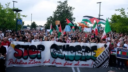 İtaliyada minlərlə insan Qəzza zolağının blokadasına etiraz olaraq Venesiya Film Festivalının keçirildiyi binanın qarşısında etiraz aksiyası keçirib.