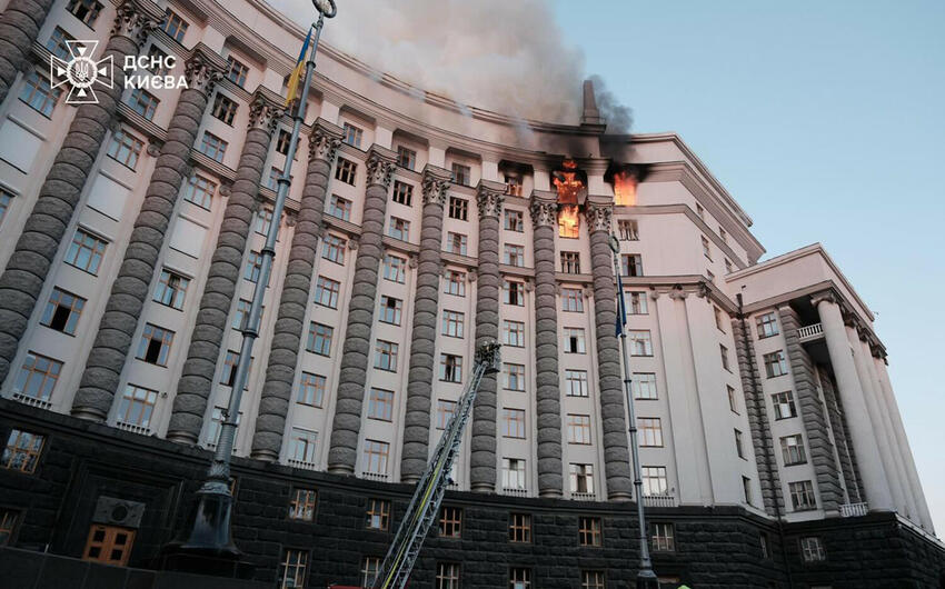 Ukraynanın Baş naziri Yuliya Sviridenkonun açıqlamasına görə, müharibə başlayandan bəri ilk dəfə hökumət binası zərbələr nəticəsində zədələnib.