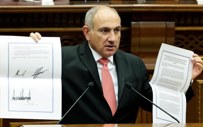 Paşinyan özü ilə parlamentə Vaşinqtonda imzalanmış sənədin böyük surətini gətirib: "Burada bildirilir ki, Ermənistan ərazisində TRIPP adlı infrastruktur (Tramp yolu, və ya Beynəlxalq sülh və rifah naminə Tramp marşrutu (TRIPP) (ing. Trump Route for International Peace and Prosperity (TRIPP) -red) olacaq. Bütün söhbət ondan ibarətdir ki, bu protokolun altında ABŞ və Azərbaycan prezidentlərinin imzaları var. Əgər regional kommunikasiyalardan danışırıqsa, biz o çərçivəni cızmışıq. Trampla mən, həmçinin “Sülhün kəsişməsi” layihəsinin inkişafı ilə bağlı niyyət memorandumu imzalamışıq. Biz razılaşdıq ki, bu layihə Ermənistanın ərazi bütövlüyü, suverenliyi, yurisdiksiyası və sərhədlərinin toxunulmazlığı prinsipləri əsasında həyata keçiriləcək və ABŞ ora investisiya yatırmaqda maraqlıdır. Bu, obyektiv reallıqdır. İstisna etmirəm ki, obyektiv və subyektiv amillərə əsaslanan bu ad (“Zəngəzur dəhlizi”) Azərbaycanda o qədər məşhurlaşıb ki, orada istənilən, o cümlədən “Tramp marşrutu” ilə sinxronlaşdırılmalı olan infrastruktur məhz belə adlandırılıb”, - Paşinyan əlavə edib.