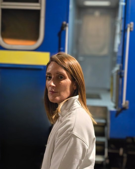 Roberta Metsola hesabında Ukrayna qatarının yanında çəkilmiş fotosunu paylaşaraq yazıb:
