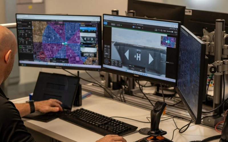Dronlar xüsusi konteynerlərdə polis binalarının damında yerləşdirilir və xüsusi təlim keçmiş operatorlar tərəfindən idarə olunur.