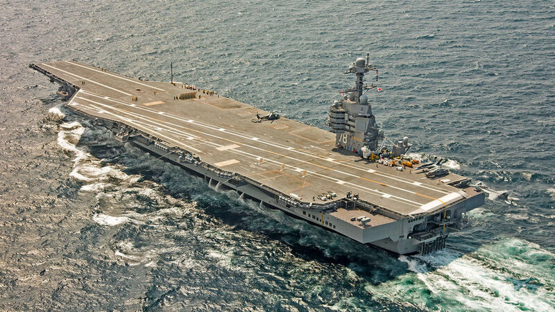 Postda “Müharibə naziri, USS Cerald R. Forda xoş gəlmisiniz” deyilir.